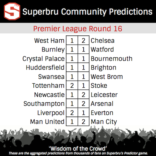 Each week we are reviewing the aggregated predictions on Superbru’s Premier League Predictor game, using the collective Wisdom of the Crowd predictions to guide our fantasy football thinking.