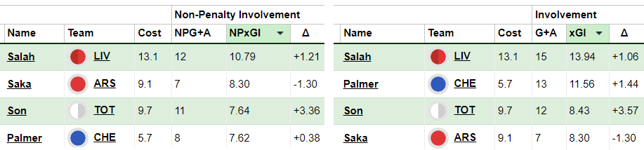 And this was actually Palmer’s first penalty since Gameweek 12. Six non-penalty returns in as many starts have arrived since then.