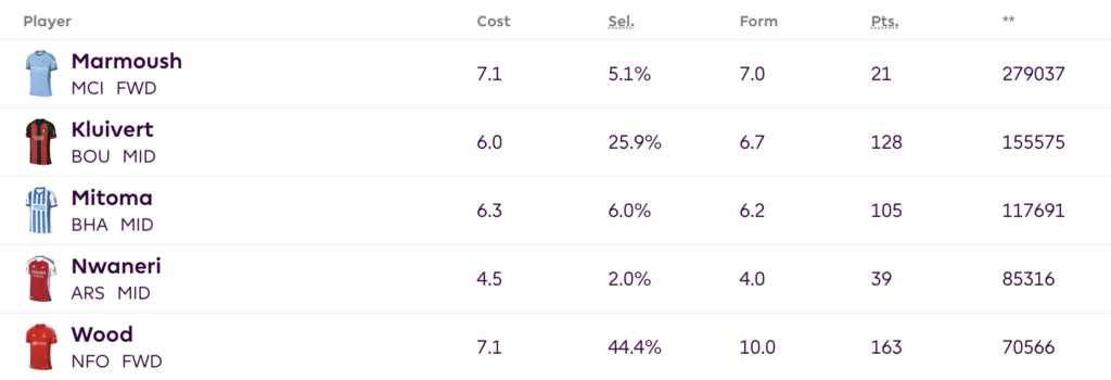 I like the idea of selling players that have just hauled as statistically they don’t haul every gameweek … except for Wood most of the time 😉