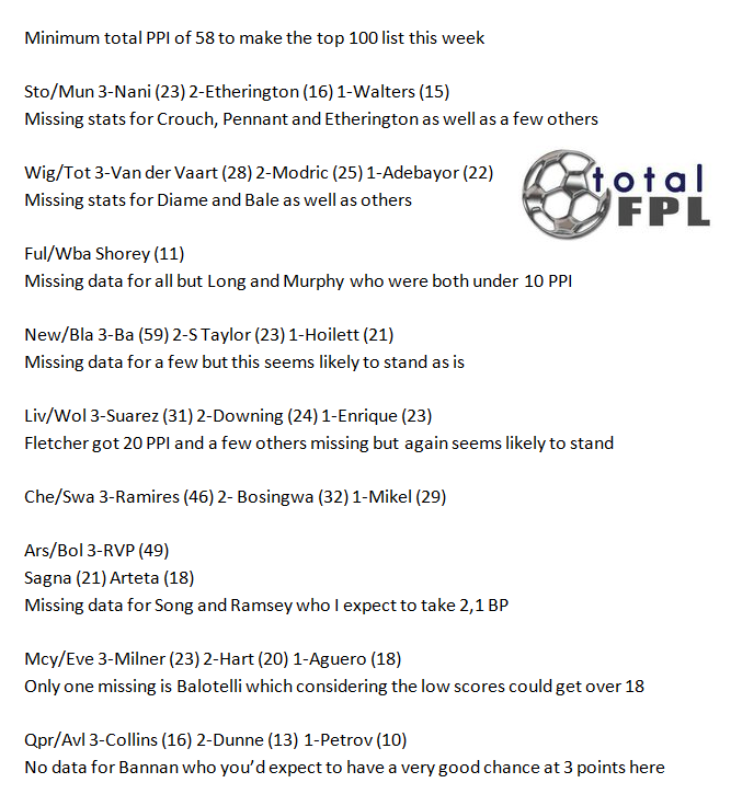 I'm hoping to creep into the top 10% in FPL this week, it will depend on tonight's game and where the Rooney captaincy goes in most cases. All my players were out on Saturday so it's becoming a very long wait.