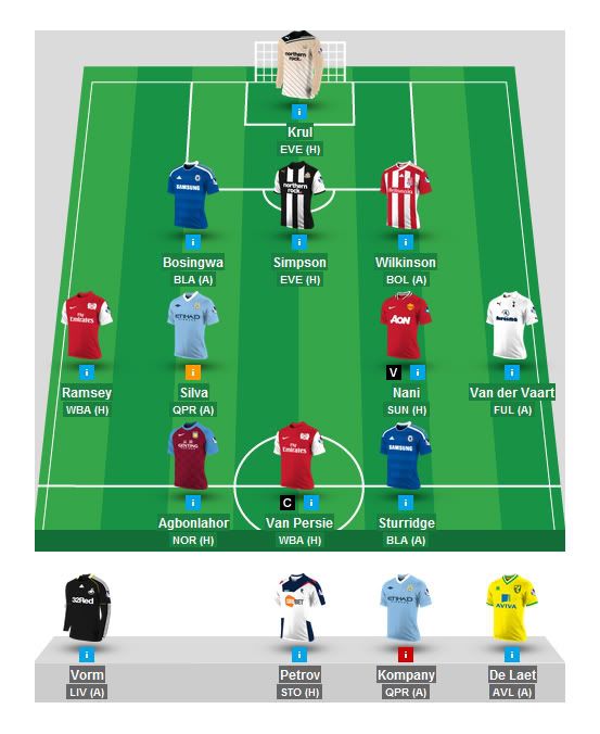 wanted to bring rvp in this week but thought might as well wait till the international break gets over b4 gettin him in cause he may get injured.. also.. terry slipped and cech pushed the ball in his own net.. just saying:)