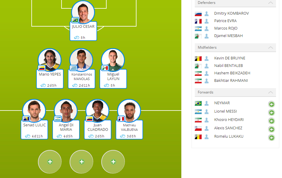 I've got Valbuena and Di Maria with Bentaleb, KDB and Park left so hoping at least two of those 3 alternates can score more than the 11 total of Valb and DM. Annoyingly I have Pjanic on Right side of midfield and don't really want to lose his 8 so can't bring on Bouguerra to add him to the gamble