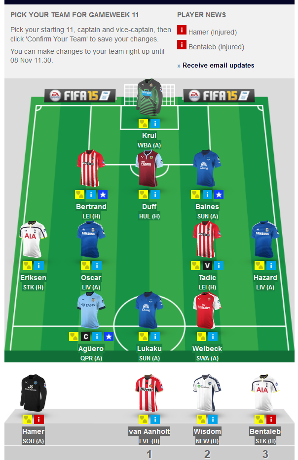 Thoughts?Chadli or Tadic for next week (GW 11)? I have Pelle alredy.