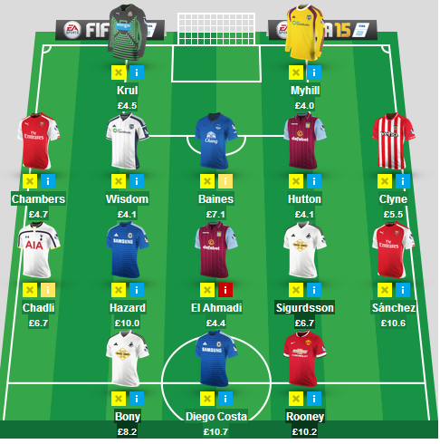 Pelle to Bony/Austin/Sakho/Inns if Baines is fit.. Rest is decent tbh.