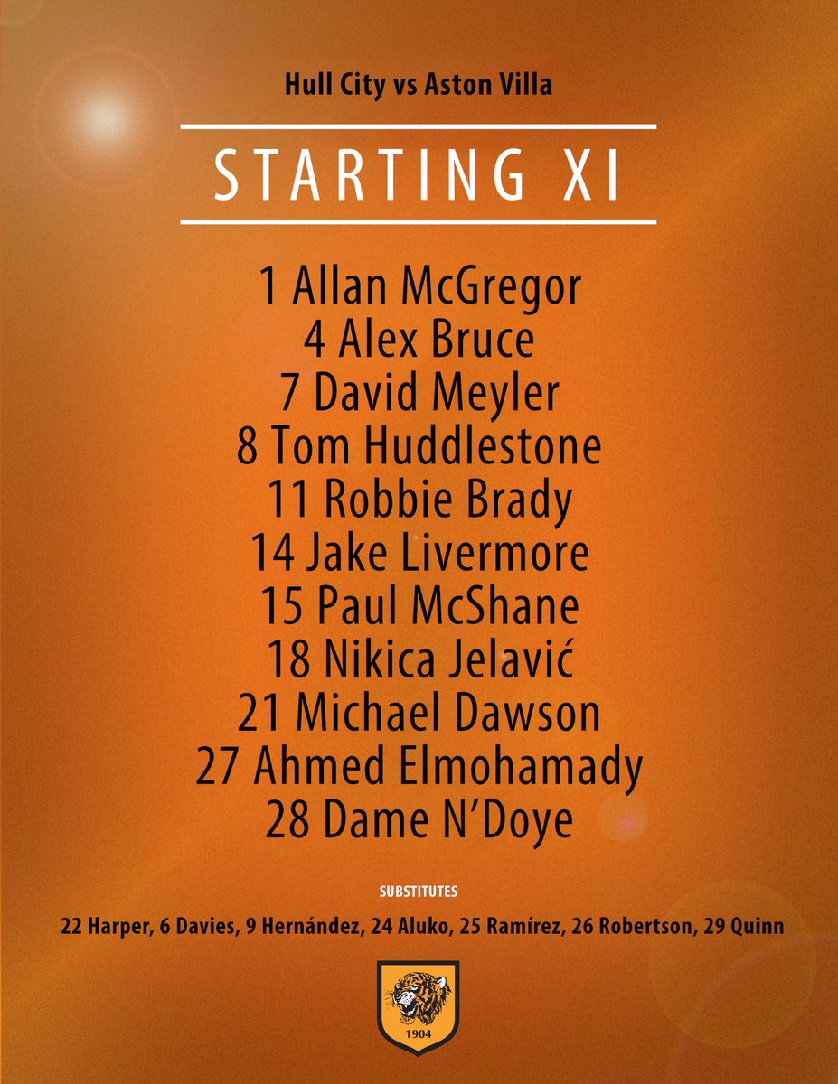 #AVFC (v @HullCity): Guzan, Hutton, Okore, Clark, Cissokho, Westwood, Delph, Gil, Sinclair, Agbonlahor, Weimann. #AVFCLIVE