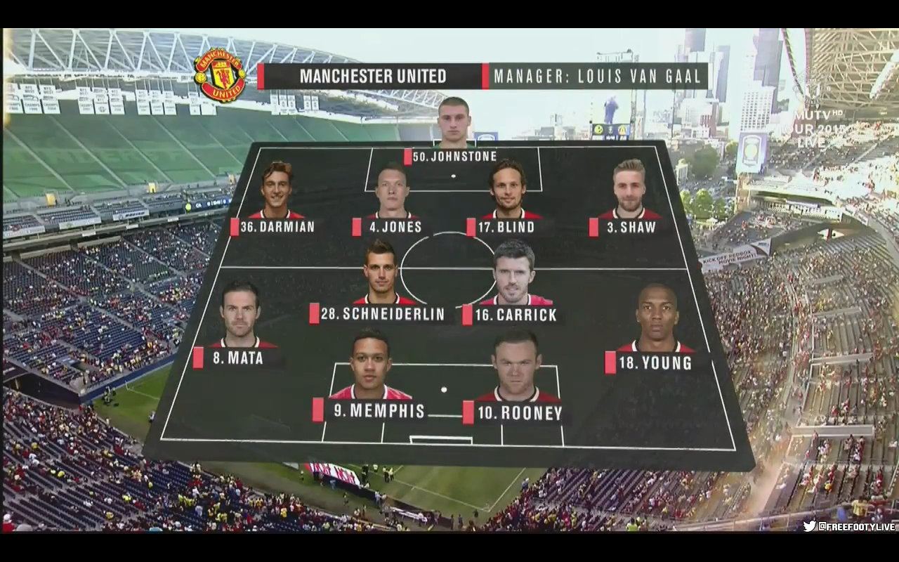 MUFC XI: Johnstone, Darmian, Jones, Blind, Shaw, Carrick, Schneiderlin, Young, Mata, Memphis, Rooney