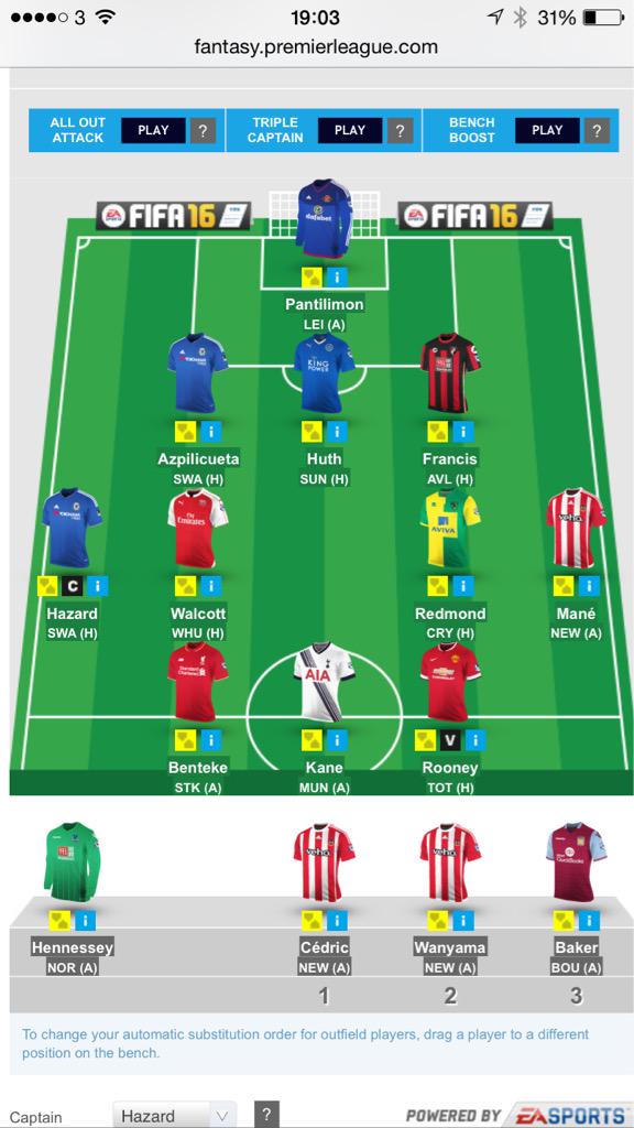 I have Walcott and Depay instead of Ozil and Sterling as well