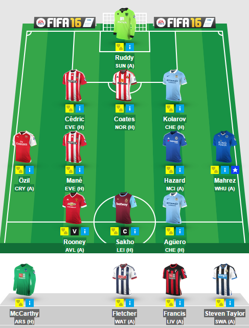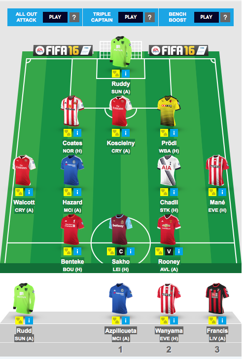 Struck early but I like it (my best finish came after a GW1 wildcard). Aguero, Sanchez & Hazard in and the favourable attacking fixtures of the rest.