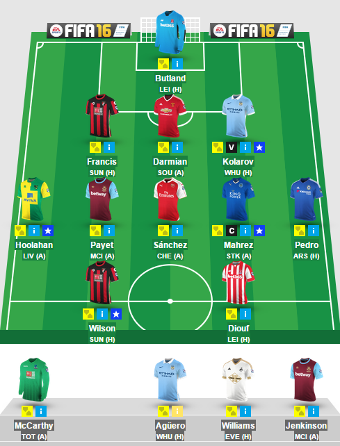 Very strong line up, only thing I'd consider is starting Williams ahead of Darmian. I'm probably doing it with him ahead of Shaw (1st bench if Aguero doesn't start)