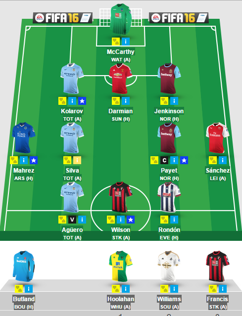 Benteke out for who? (Got Aguero and Wilson, £0ITB) Cheers