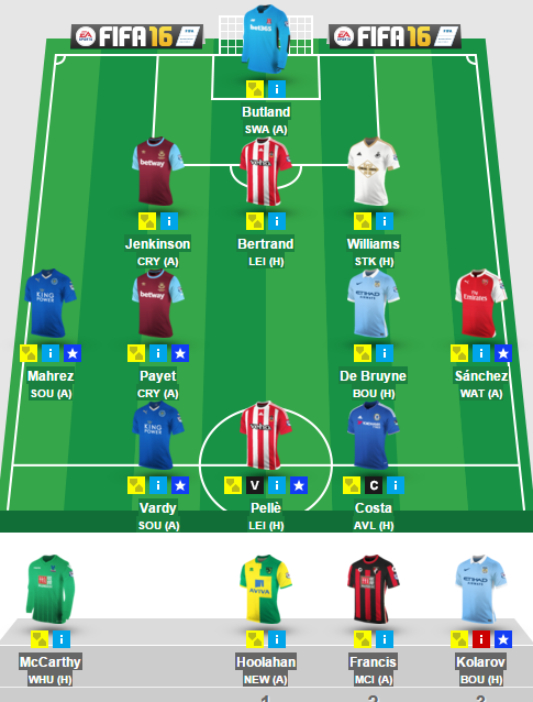 Alexis Sanchez (20%) is the second most popular captaincy choice. Although he travelled back from Peru on Thursday and has a crucial Champions League encounter against Bayern Munich in midweek, Sanchez is hard to ignore by virtue of his nine goals in five outings for club and country.