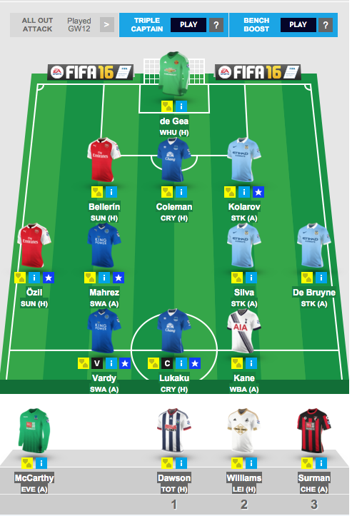 Gameweek 15’s Community Champion as selected by our lottery, is Jose’s Magic Omelette. His team is as follows: Stekelenburg, Alderweireld, Van Dijk, Moreno; Ozil, Hazard, Mane, Barkley; Kane, Vardy, Lukaku.