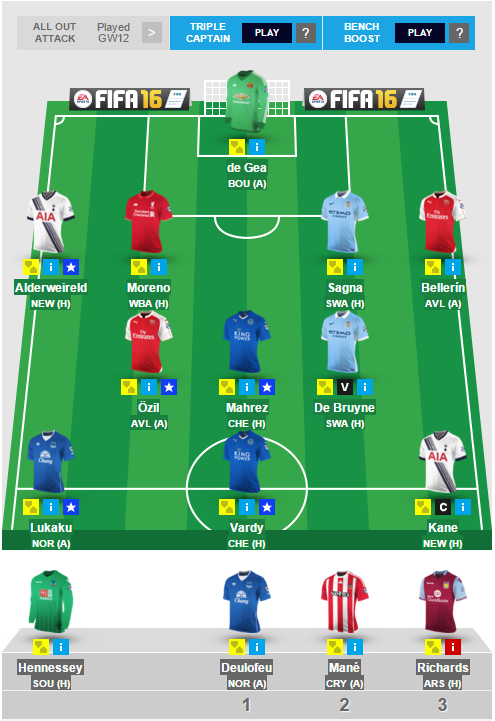 Gameweek 16’s Community Champion as selected by our lottery, is Shaktimaan. His starting XI is as follows: Gomes, Koscielny, Moreno, Rose; Sterling, Mata, Mahrez, Coutinho; Lukaku, Kane, Giroud.