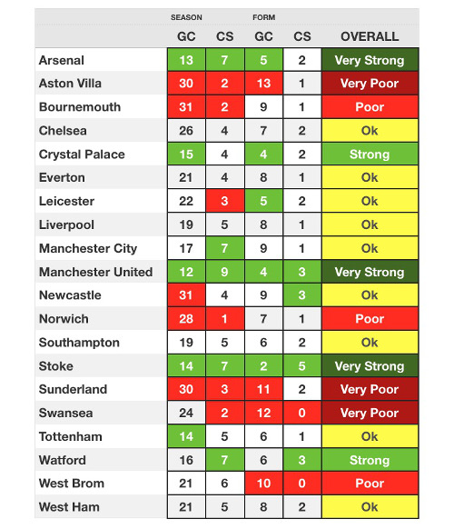 KEY: GS = Goals Scored, FS = Failed to Score, GC = Goals Conceded, CS = Clean Sheet.
