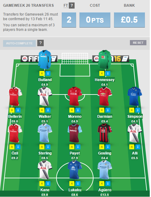 Having sold Aguero for Costa means if City beat Chelsea that I will miss out on having Aguero against Villa in GW29 🙁