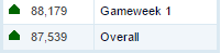Got a gw rank of 1,951 from a score of 73, certainly was not expecting that 😉
