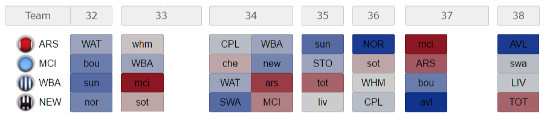 Norwich only have three very good fixtures but no double in Gameweek 34 and then a blank in Gameweek 35 so they may be best avoided until Gameweek 36 at the earliest, but even then they play away at Arsenal so perhaps Norwich punts are best avoided until Gameweek 37 itself.