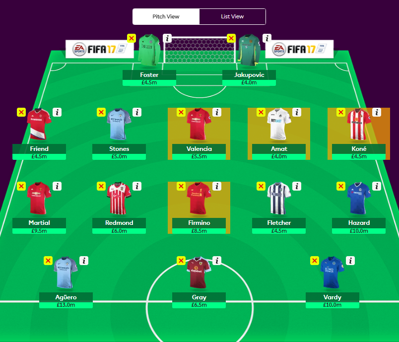 You have to spend at least 9.0m spent on keepers imo. I'd also be very tempted to downgrade firmino to swap Vardy + Martial for Ibra + Mahrez.