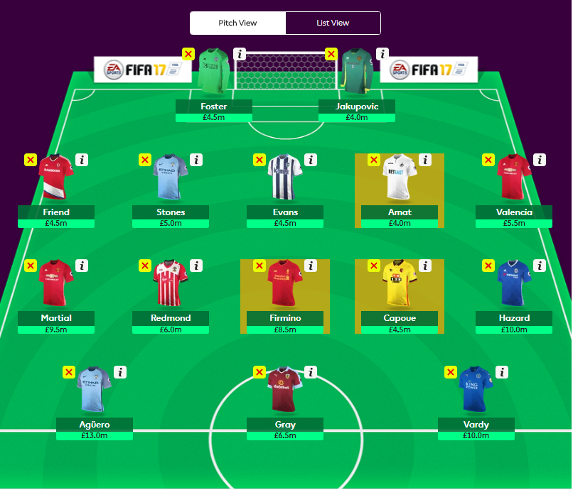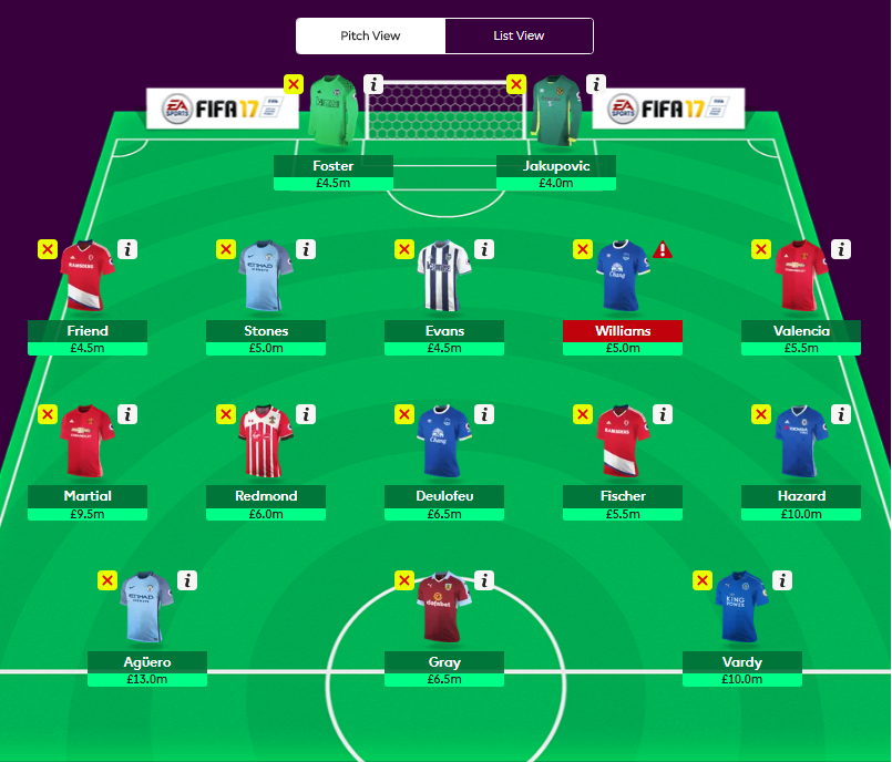 In terms of planned changes, I intend for Bailly to be temporary and intend to switch to Catchcart (£4.5) which gives me another £1m in the bank (£2m total). Depending on if he plays or not, I might also switch out Masuaku.