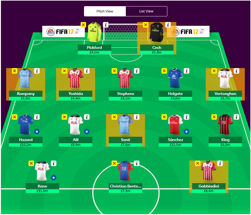 Very nice. Not sure about Kompany though. I agree he's nailed as the captain, but a slight niggle can keep him out of a game.