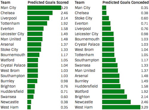 And here is the ranking of teams in order of Expected Goals Scored and Conceded: