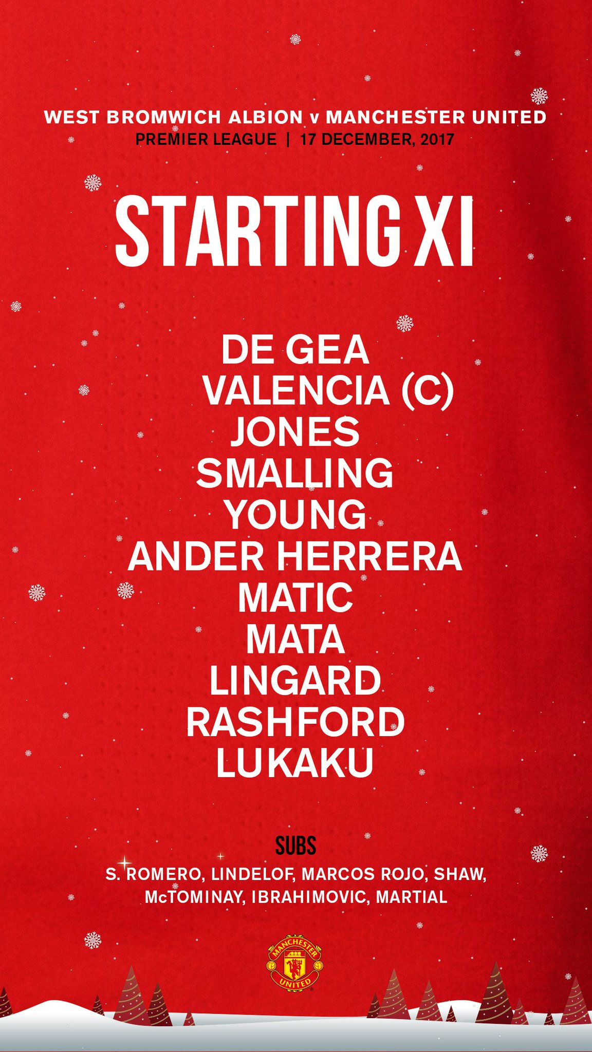 MAN UTD XI V WEST BROM: de Gea, Jones, Young, Antonio Valencia, Smalling, Lingard, Rashford, Mata, Herrera, Matic, Lukaku