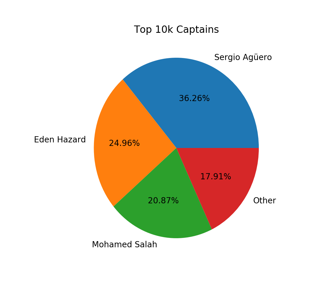 Aguero is also leading the captaincy stats in the top 10k as we see below: