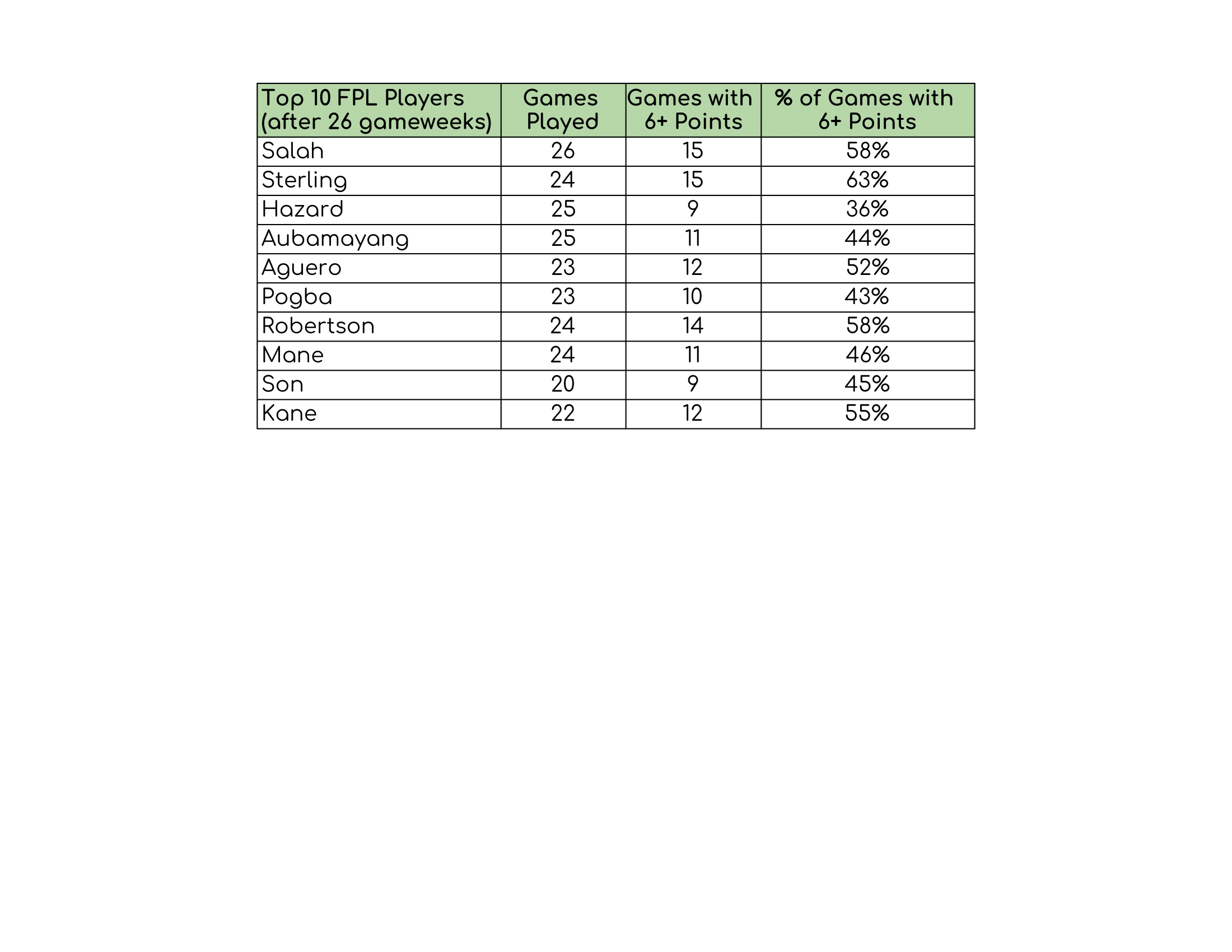 So, how do the clean sheet statistics compare to some of the top players in the league, and how often they get at least 6 points (same for a keeper or defender who gets a clean sheet)?