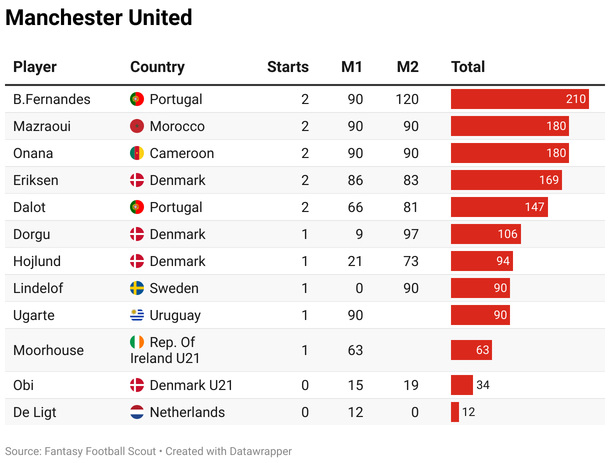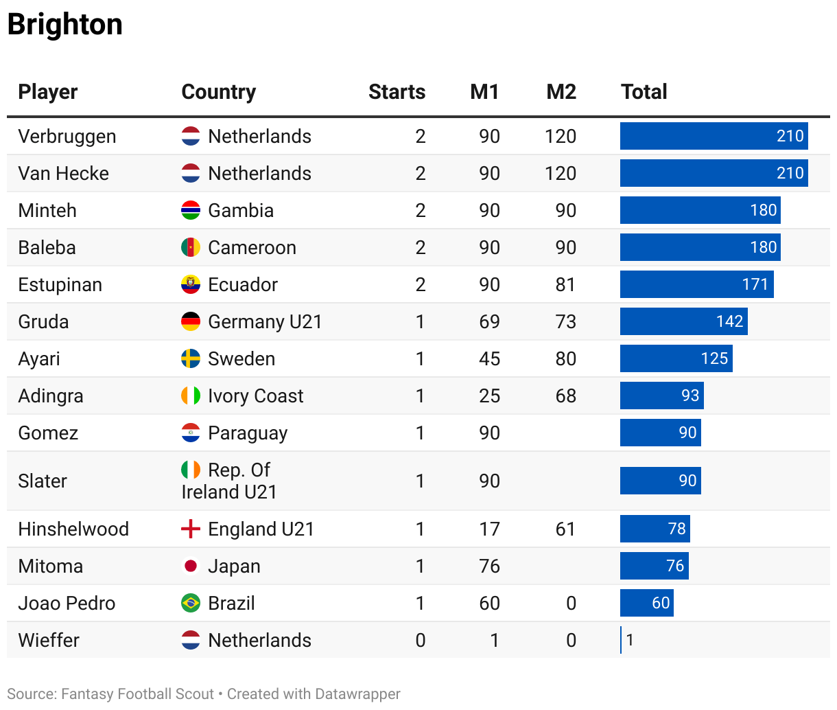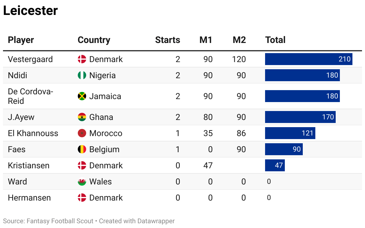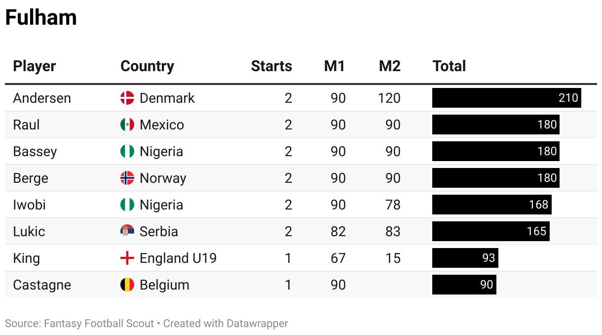 In this piece, we tot up how many minutes each FPL asset clocked up while on international duty.