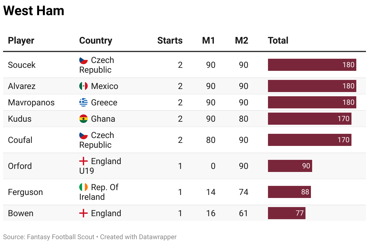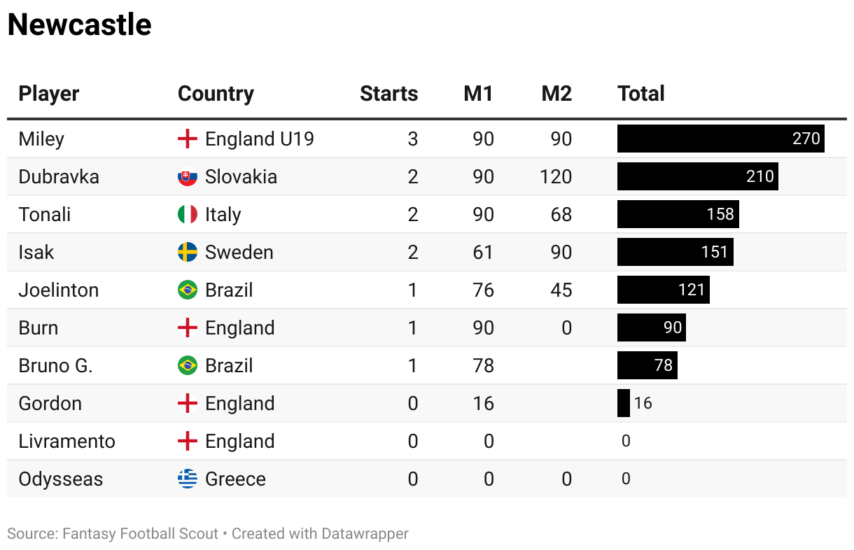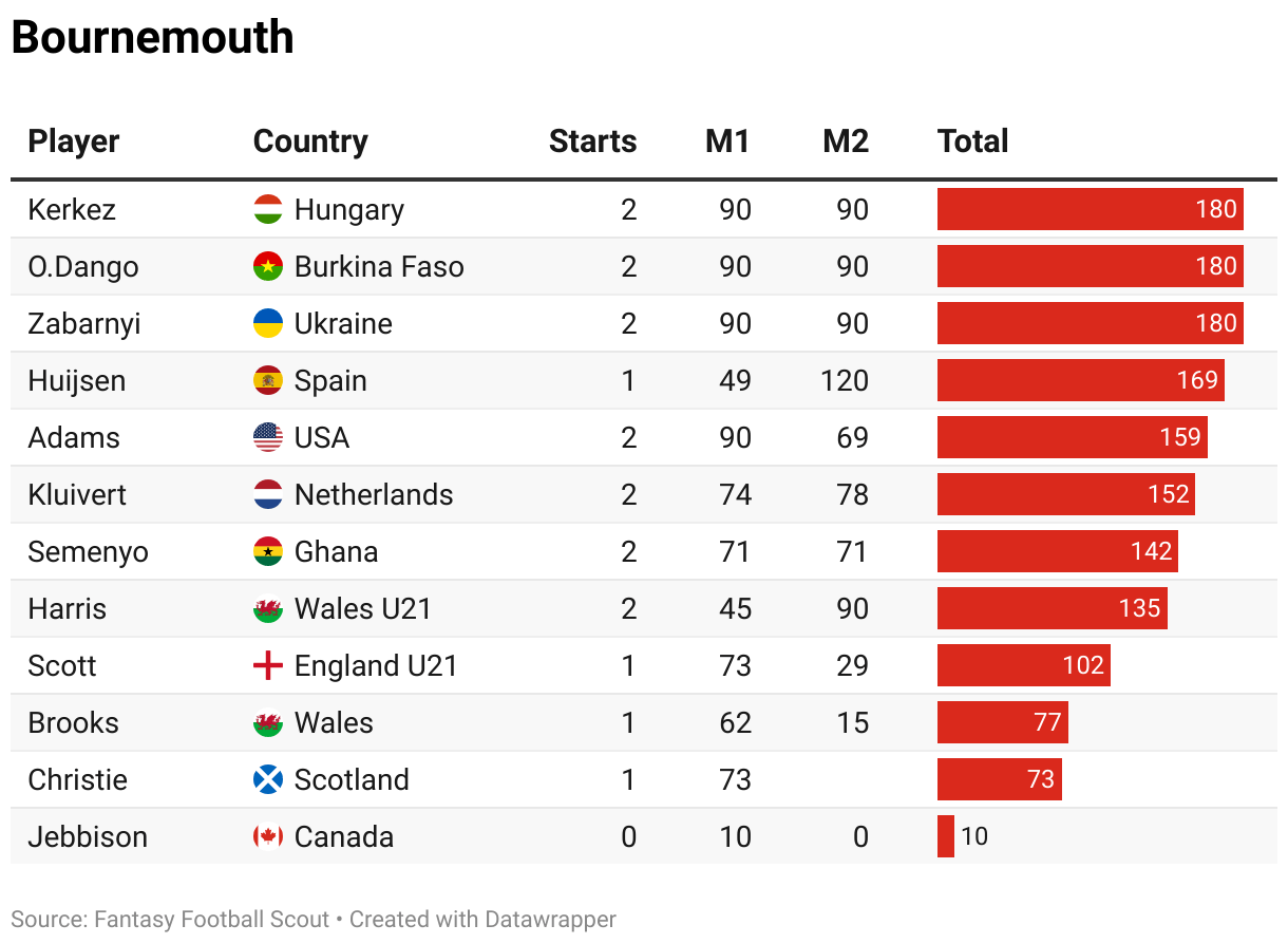In this piece, we tot up how many minutes each FPL asset clocked up while on international duty.