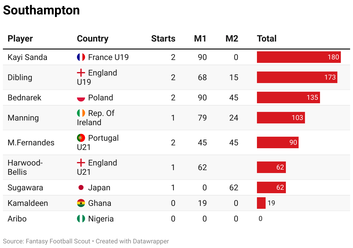 It should be said that both late returns and accumulated minutes may be less of a concern in Gameweek 30 than they usually are. The Premier League doesn’t resume till next Tuesday, rather than this weekend, so there is a bit of extra breathing space and recovery time in this instance.