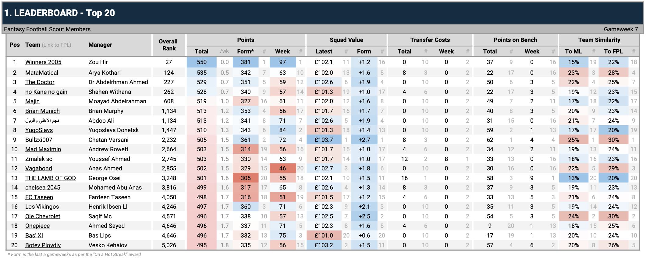 Zou Hir is the new leader of our Fantasy Football Scout Community Members mini-league with a Bench-Boosted 97 points. Last week’s leader Arya Kothari drops to second.
