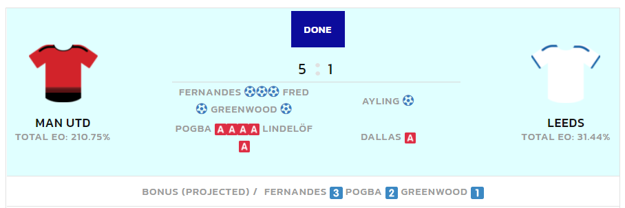 Paul Pogba (£7.5m) bagged four assists from five chances created in Manchester United’s 5-1 win over Leeds United.