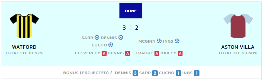 Emmanuel Dennis (£5.0m), who bagged a double-digit haul against Dean Smith’s troops, seemed to limp off midway through the second half at Vicarage Road.
