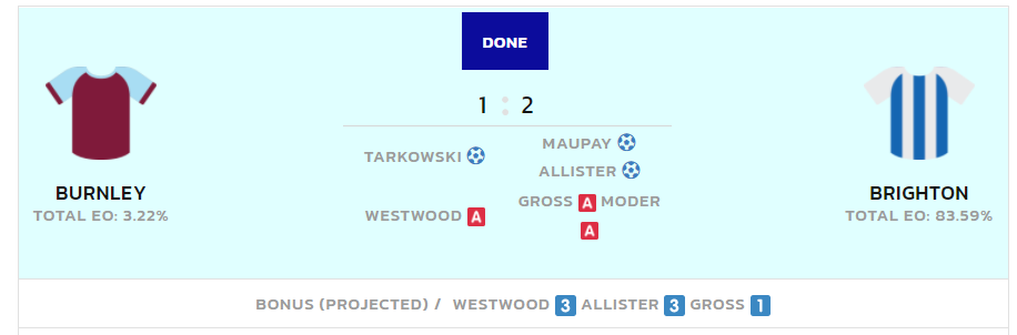Graham Potter said that Joel Veltman (£4.5m) was absent today because he had come into close contact with a person who had tested positive for Covid-19. Percy Tau and Aaron Connolly (£5.5m) were out for “personal reasons”.