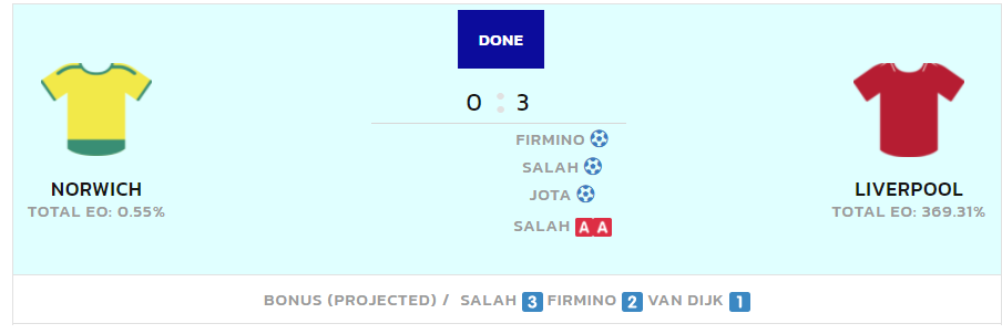 Jota getting hooked on 60 for a performing firmino isn’t ideal. Anyone else looking to sell him this week?