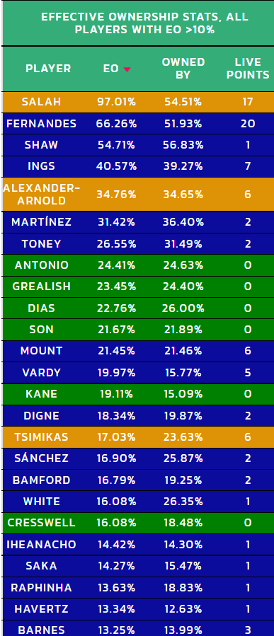 They were the only players with an effective ownership of greater than 10% who banked double-digit hauls.