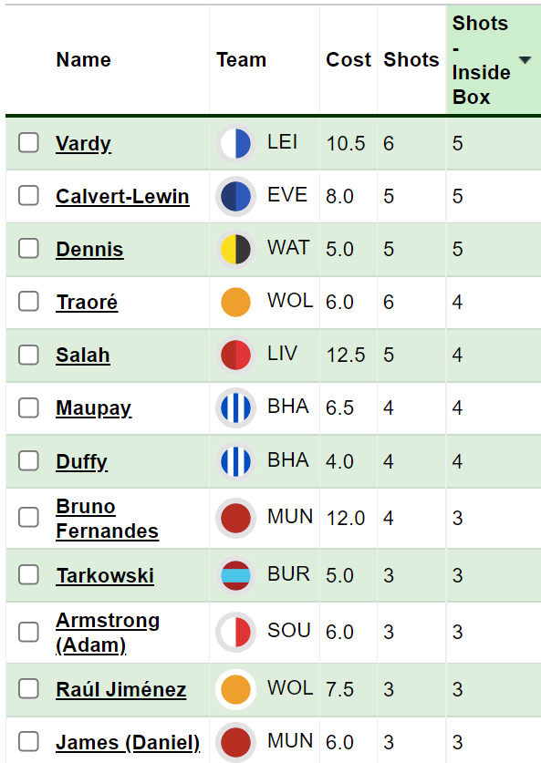 Dominic Calvert-Lewin (£8.0m) marked his return from injury with a goal in Everton’s win over Southampton and tops the expected goal involvement (xGI) table in Gameweek 1 so far, with his tally of five shots in the box not trumped by any other player, either.