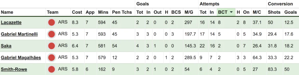 That promotes Alexandre Lacazette (£8.3m), a default starter since Pierre-Emerick Aubameyang’s exit, as one of the better forward options on offer.