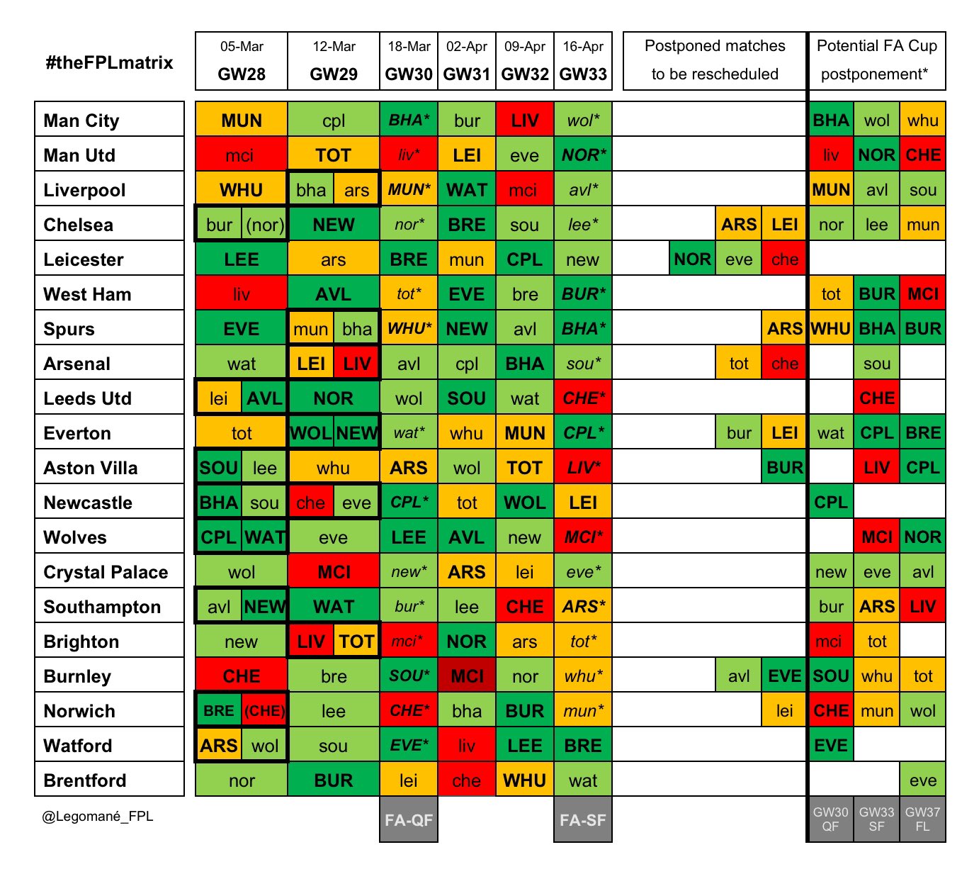 Both clubs will ‘double’ in Gameweek 28 if that happens, with Chelsea away at Burnley and Norwich.