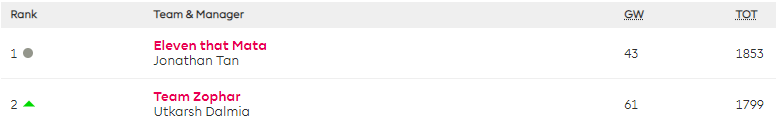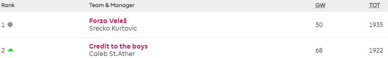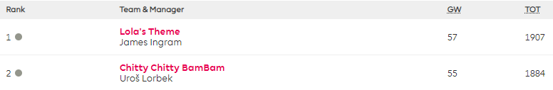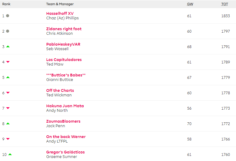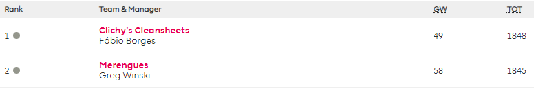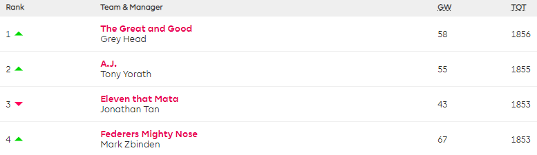 Grey Head (The Great and Good) has regained the lead from Jonathan Tan in PDM’s Top 1k ANY season mini-league (league code 01ef8y) and is now 1,432nd overall. He previously led after Gameweek 19 and is 468th in our FFS Live Hall of Fame.