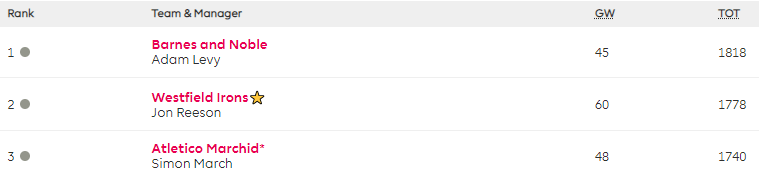 But Jonathan does still top Livinginapool’s Top 100 Any Season mini-league (league code pztxjt), for a tenth week, and is now 1,692nd overall.