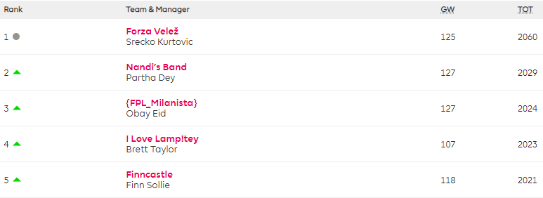 The highest scorer after hits was Turtle Bear, who played his Bench Boost and captained Mount for a score of 152.