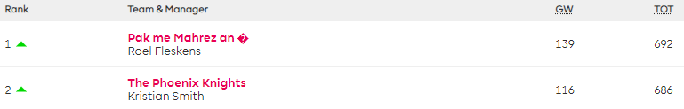 Roel Fleskens is the new leader in my January to May League (league code fy0acw) after playing his Wildcard and captaining Coutinho, and has risen from 397k after Gameweek 20 to 51k now. He came 6,781st in 2019/20.