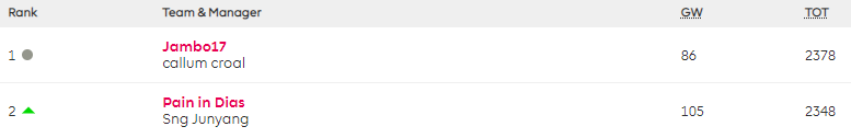 Daniel Gustafsson tops my January to May League (league code fy0acw) for a third week after playing his Wildcard. He has risen from 18k after Gameweek 20 to his current position of 172nd.