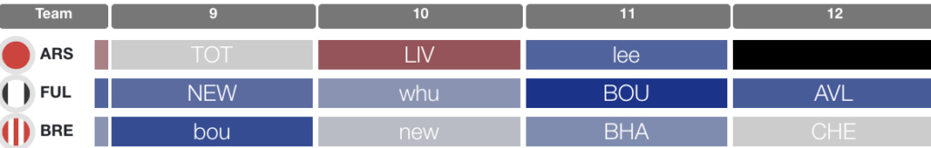 Above: Gabriel Jesus, Aleksandar Mitrovic and Ivan Toney’s next four fixtures compared