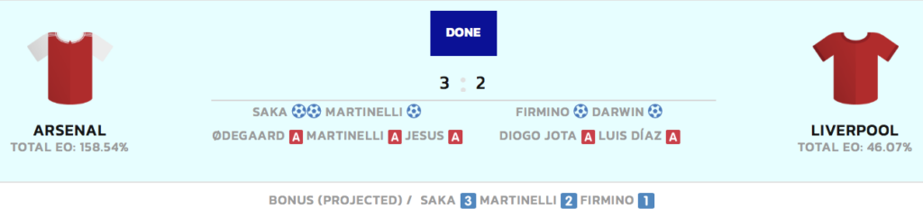 | Arsenal | 3 – 2 | Liverpool |