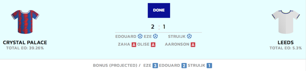 | Crystal Palace | 2 – 1 | Leeds United |