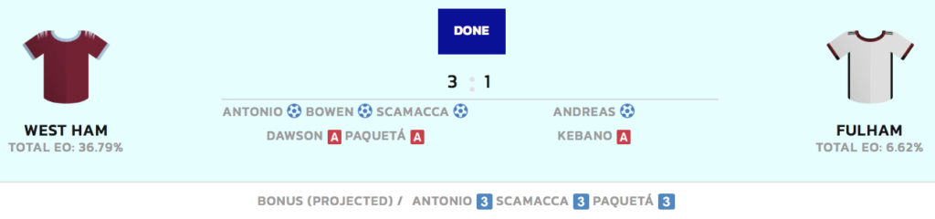 | West Ham United | 3 – 1 | Fulham |