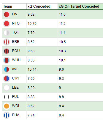 The above stats suggest they’ve partly been the victim of clinical finishing, as no team has a bigger difference between expected goals conceded (xGC, a pre-shot model based on the quality of chance) and xG on target conceded (a post-shot model based on the quality of execution).